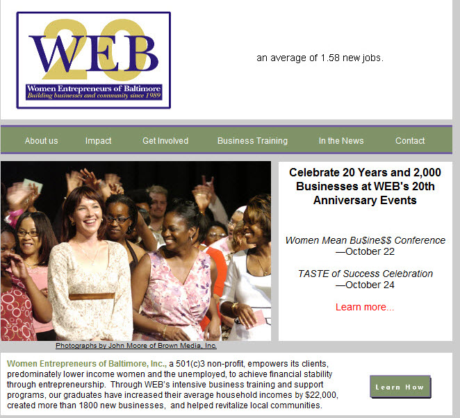 Our print and e-marketing campaigns combine crisp copy and attention-grabbing images to convey your message. In this web-based slide show for an upcoming Holiday Expo for women entrepreneurs, a few words and great photos invite viewers to learn more about the event. Photos by Glenn Write service partner John Moore of Brown Media, Inc.